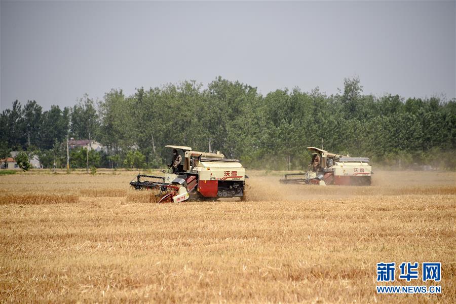 6月7日,在江苏省淮安市洪泽区朱坝镇,农民驾驶收割机在田间抢收小麦。 “三夏”时节,农民利用晴好天气加紧收割小麦,确保颗粒归仓。 新华社发(张建 摄)