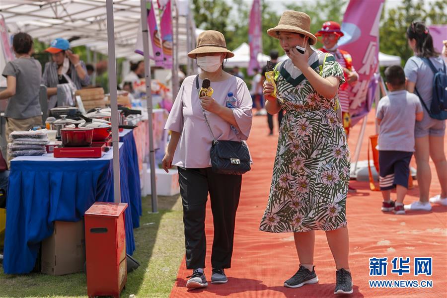 6月7日,人们在公园逛购物节。新华社发(王翔 摄)