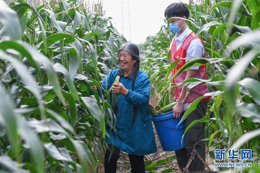 6月8日,志愿者和低保户老人一起收获玉米。 当日,浙江省慈溪市钱海军志愿服务中心的志愿者们来到慈溪市崇寿镇海运村,帮助与该中心结对的低保户老人,一起收获地里成熟的玉米,并通过线上直播、线下设摊的形式进行义卖。近期,浙江省慈溪市钱海军志愿服务中心举办多次爱心助农活动,组织青年志愿者到农村帮助孤寡老人、低保户、残疾农户采收蔬菜、水果并进行义卖。 新华社记者 徐昱 摄