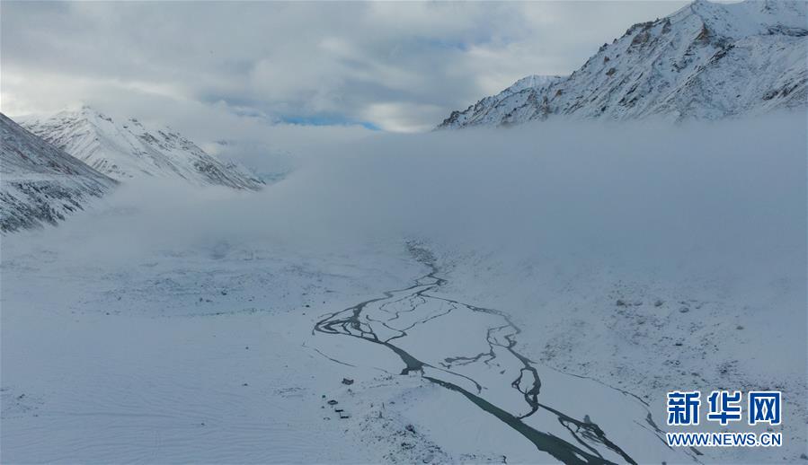这是珠峰脚下的绒布河(无人机照片,5月27日摄)。 从空中俯瞰珠穆朗玛峰北坡,生机勃勃的高原湿地、蜿蜒曲折的盘山公路、壮丽秀美的绒布冰川,还有安静的村庄和热闹的登山营地,共同构成一幅壮美画卷。 新华社记者晋美多吉 摄