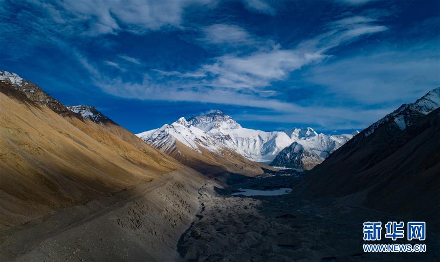这是珠穆朗玛峰(无人机照片,5月25日摄)。 从空中俯瞰珠穆朗玛峰北坡,生机勃勃的高原湿地、蜿蜒曲折的盘山公路、壮丽秀美的绒布冰川,还有安静的村庄和热闹的登山营地,共同构成一幅壮美画卷。 新华社记者普布扎西 摄