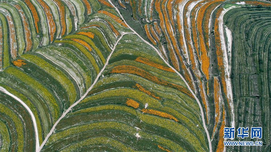宁夏固原市彭阳县旱作梯田(2019年8月13日摄,无人机照片)。新华社记者冯开华摄