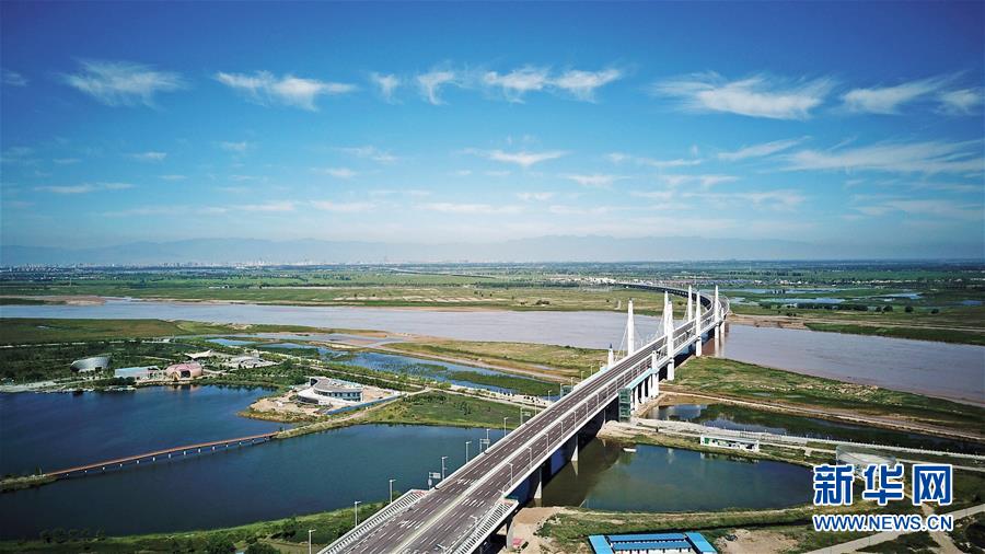 黄河宁夏银川段(2019年8月12日摄,无人机照片)。新华社记者王鹏摄