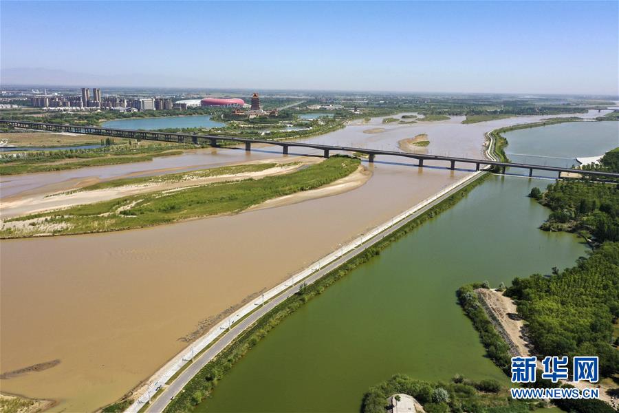 宁夏吴忠市黄河国家湿地公园一景(6月3日摄,无人机照片)。新华社记者冯开华摄