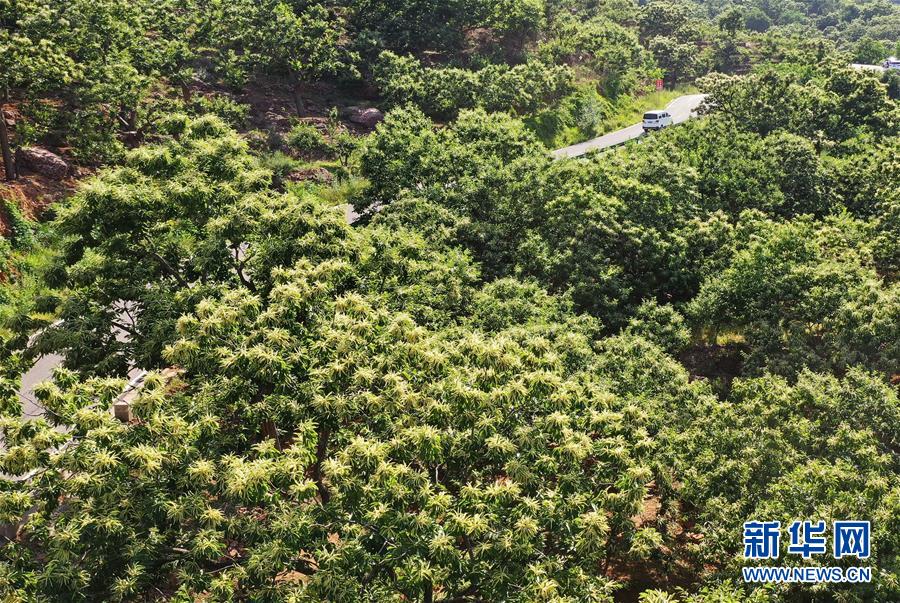 这是6月10日拍摄的河北省迁安市大五里乡盛开的栗花(无人机照片)。 近日,河北省迁安市栗花进入盛花期。迁安市板栗栽培历史悠久,现有种植面积11万亩,是带动当地农民增收的特色产业。 新华社记者 牟宇 摄