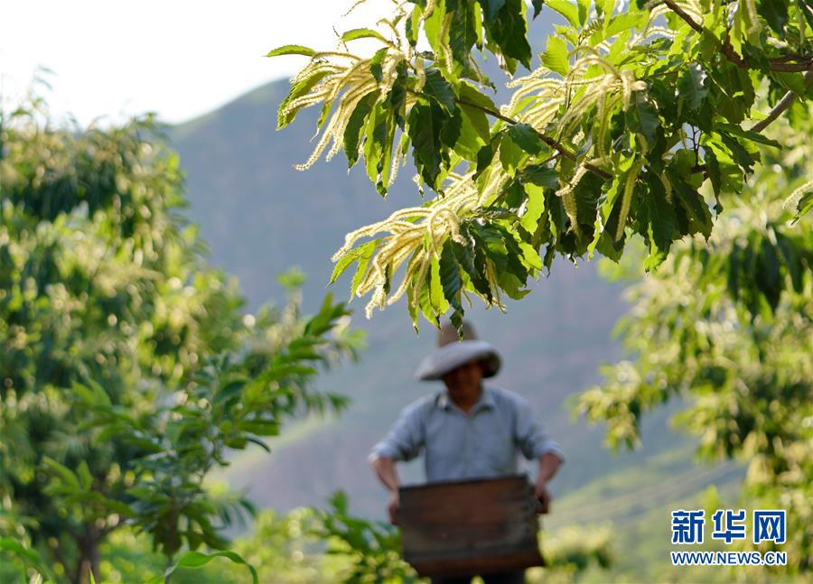 6月10日,蜂农在河北省迁安市大五里乡板栗林里搬运蜂箱。 近日,河北省迁安市栗花进入盛花期。迁安市板栗栽培历史悠久,现有种植面积11万亩,是带动当地农民增收的特色产业。 新华社记者 牟宇 摄
