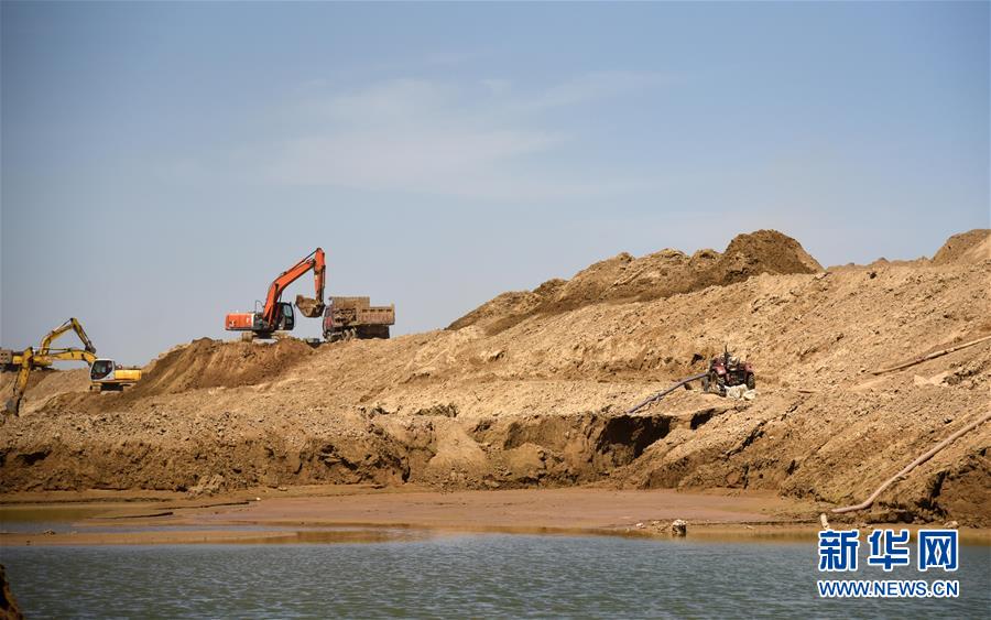 6月14日,施工人员在山东小清河复航工程济南段进行施工作业。 连日来,山东小清河复航工程正在加紧施工。该工程是山东省推进内河航道建设和新旧动能转换重大项目,全长近170公里,涵盖小清河沿线五个城市,预计将于2022年复航。 新华社记者 王凯 摄