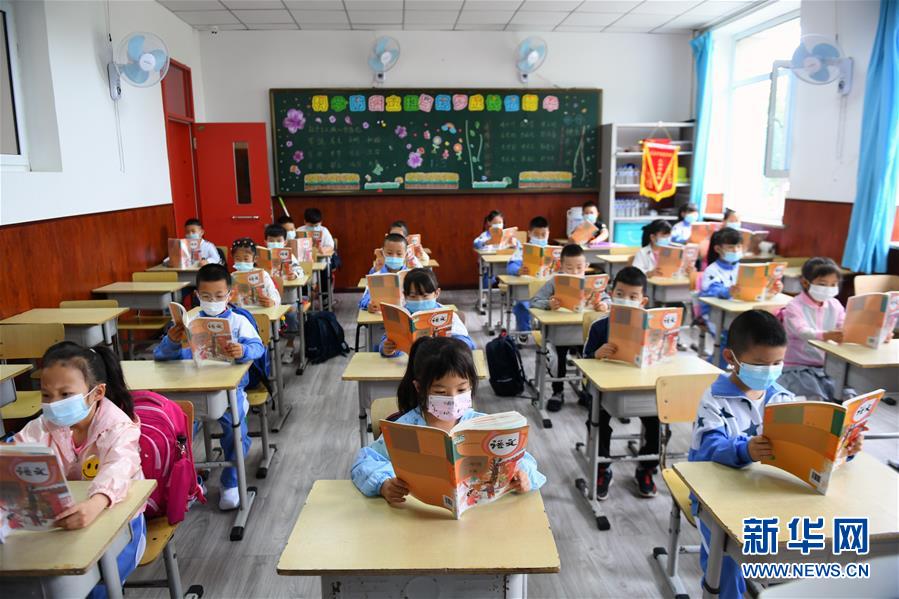 6月15日,在长春市第一实验东光学校,一年级一班学生在上语文课。 当日,吉林省长春市各小学一、二年级学生正式开学复课。至此,长春市中小学各年级已全部复课。 新华社记者 林宏 摄