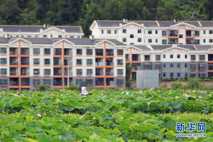 6月13日,一只苍鹭在思南县塘头镇荷田上空飞行。 6月以来,贵州省思南县塘头镇1200亩荷田里的荷花渐次开放,景色优美。 新华社记者 刘勤兵 摄