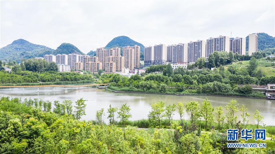 夏日时节,位于贵州省六盘水市钟山区的明湖国家湿地公园草木苍翠,风景如画,吸引人们前来休闲游玩。 新华社记者 陶亮 摄