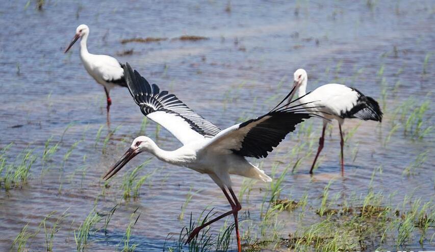 三只东方白鹳鄱阳湖畔放归自然