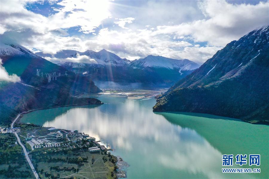 位于昌都市八宿县境内318国道旁的然乌湖(6月7日摄,无人机照片)。 新华社记者 田金文 摄