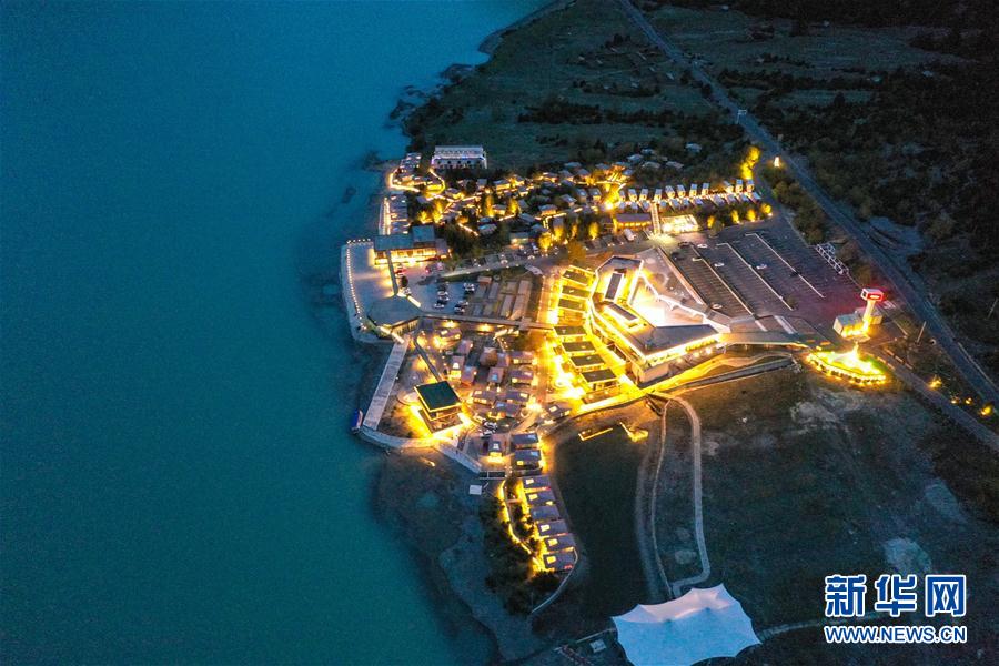 然乌湖畔的乡村旅游房车营地(6月6日摄,无人机照片)。新华社记者 白少波 摄