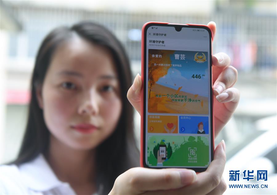 6月17日,工作人员展示手机中基于废品回收连锁服务站开发的APP,居民可以通过APP累计废品回收的积分以及联系上门回收。 2020年初开始,浙江省湖州市龙泉街道开始打造街区内标准化废品回收“连锁店”。龙泉街道有10个社区8万多居民,针对以往废品回收价格混乱、人员无序等情况,街道联合专业再生资源回收企业,建设统一门店,统一回收价格和回收系统,同时对在社区“打游击”的个体废品回收人员进行专业培训,纳入管理体系。通过标准化废品回收“连锁店”的建设,龙泉街道80%以上的社区回收垃圾可以送到再生资源回收企业二次利用。 新华社记者 徐昱 摄