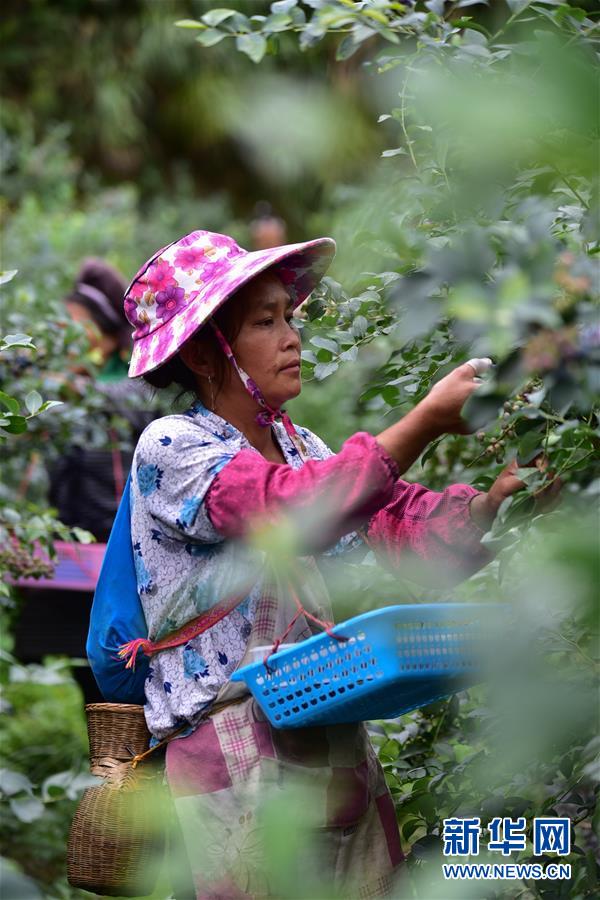 6月17日,村民在贵州省丹寨县排调镇排调村的蓝莓种植基地里采摘蓝莓。 贵州省黔东南苗族侗族自治州丹寨县排调镇排调村蓝莓种植基地的120多亩蓝莓陆续进入采收期,当地村民忙着采摘、分拣、挑运蓝莓,种植基地里一派喜获丰收的繁忙景象。 新华社发(杨武魁 摄)