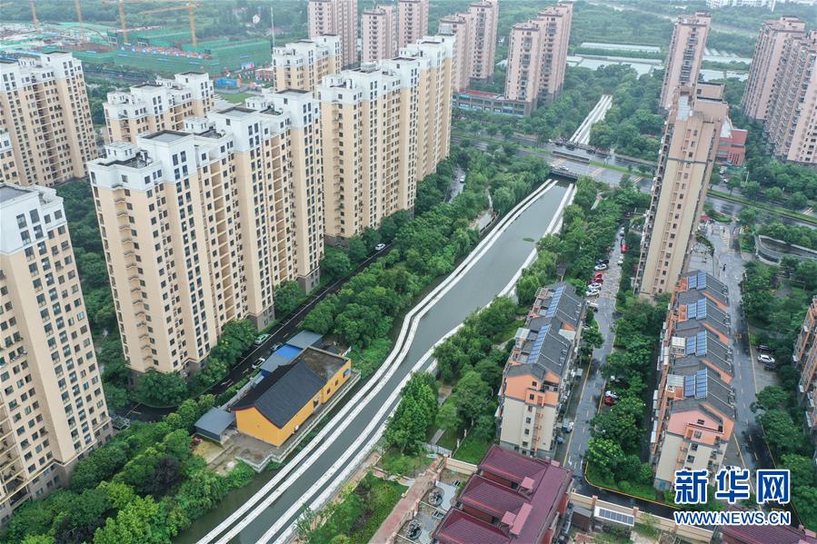 6月29日在吴兴区湖东街道拍摄的“水上稻田”(无人机照片)。
