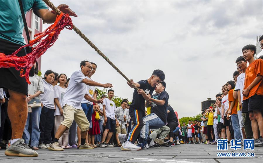6月28日,在湖南省永州市道县第一中学,学生们在进行拔河比赛。 2020年高考临近,湖南省永州市道县第一中学通过开展形式多样的集体减压活动,帮助高三学生释放身心压力,轻松迎考。 新华社发(蒋克青 摄)