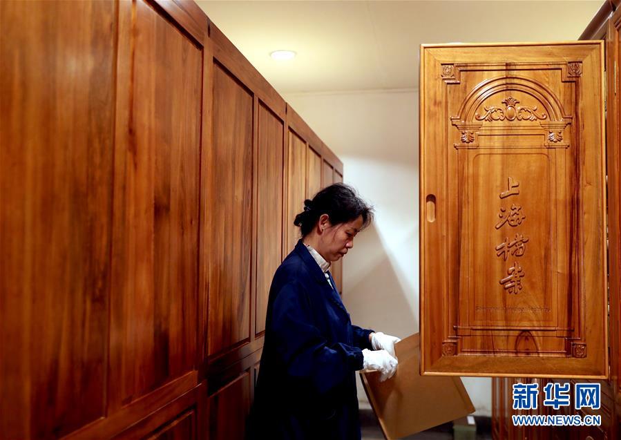 6月29日,上海市档案馆档案保管部的工作人员在档案库里提取档案。