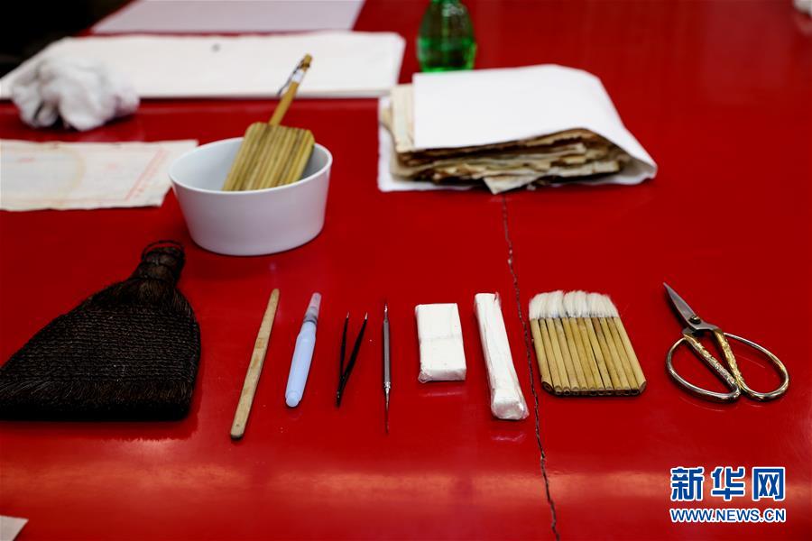 这是6月29日在上海市档案馆保护技术部拍摄的档案修复的常用工具。
