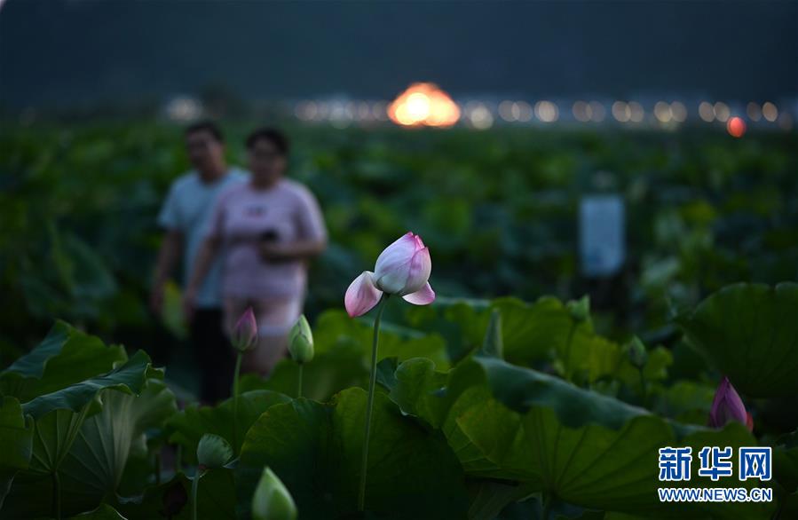 6月28日,游客在广西柳州市柳江区百朋镇万亩荷塘里游玩。新华社发(黎寒池 摄)