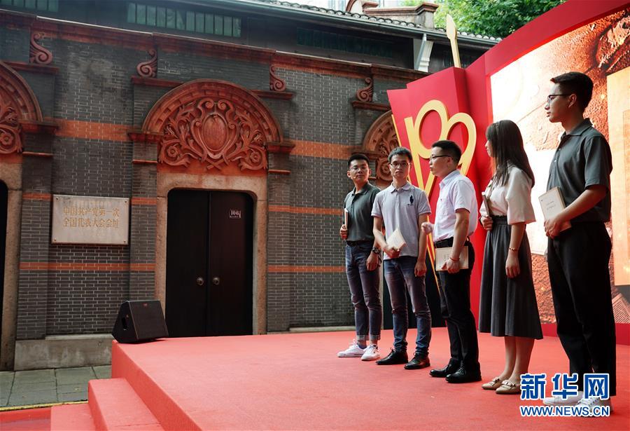 6月29日,复旦大学师生代表在一大会址前展示情景教学。 当日,“新时代答卷人——上海市教育系统庆祝中国共产党成立99周年暨学生爱国主义教育主题活动”在中共一大会址前举行。来自复旦大学、同济大学、上海建桥学院、上海市曹杨第二中学等8所学校的200余名师生代表参加活动,通过情景讲述、现场教学、集体朗诵等形式,庆祝中国共产党成立99周年,展现广大上海学子的爱国情、强国志。 新华社记者 刘颖 摄