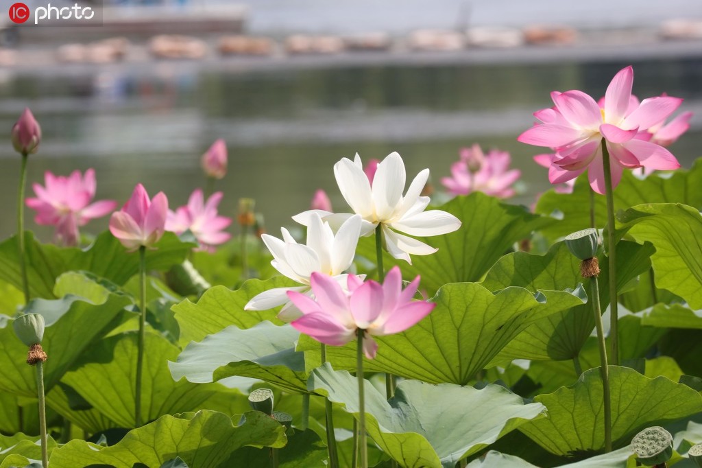 2020年7月5日,北京,入夏以来,北京玉渊潭公园里的荷花竞相绽放,在绿叶的映衬下娇艳迷人,别有一番清新之美。陈晓根/IC photo