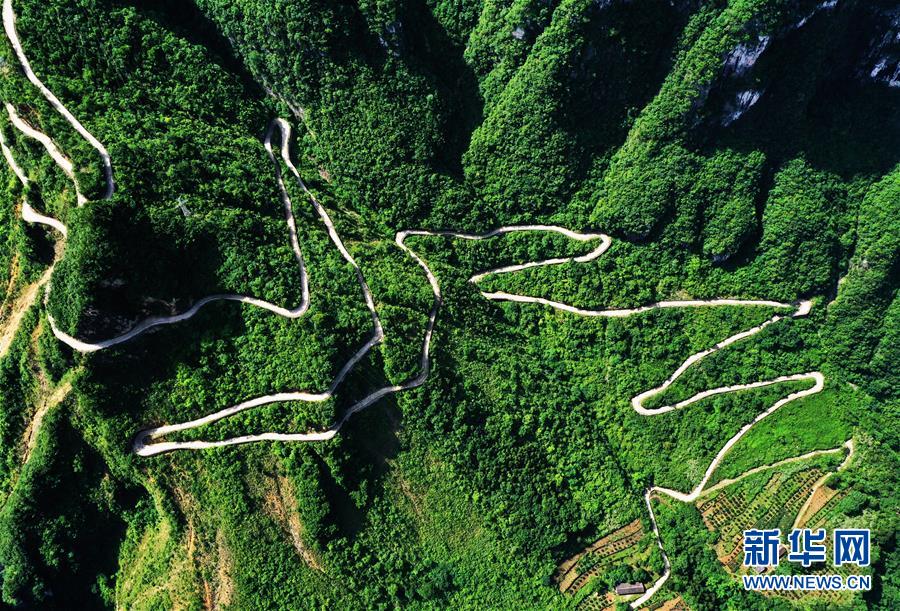 下庄村通往外界的公路(7月3日摄,无人机照片)。 新华社记者 王全超 摄