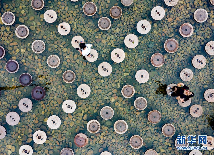 7月4日,游客在武安市牛心山村花溪谷景区游玩(无人机照片)。 近年来,河北武安市积极推动乡村旅游发展,借助农业、人文、生态等资源优势,打造休闲游、采摘游、亲子游综合旅游模式,促进当地群众就业增收,助力乡村振兴。 新华社记者 王晓 摄