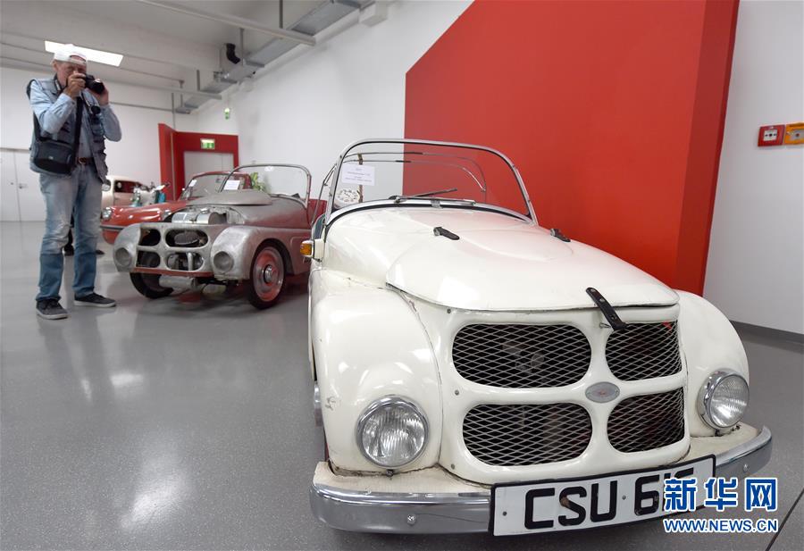7月8日,一名男子在奥地利弗森多夫举行的“迷你”老爷车展上拍摄。新华社记者 郭晨 摄