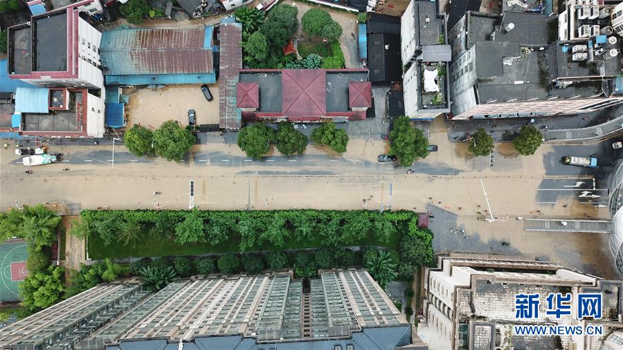 这是7月8日在湖南省吉首市拍摄的积水路面(无人机照片)。