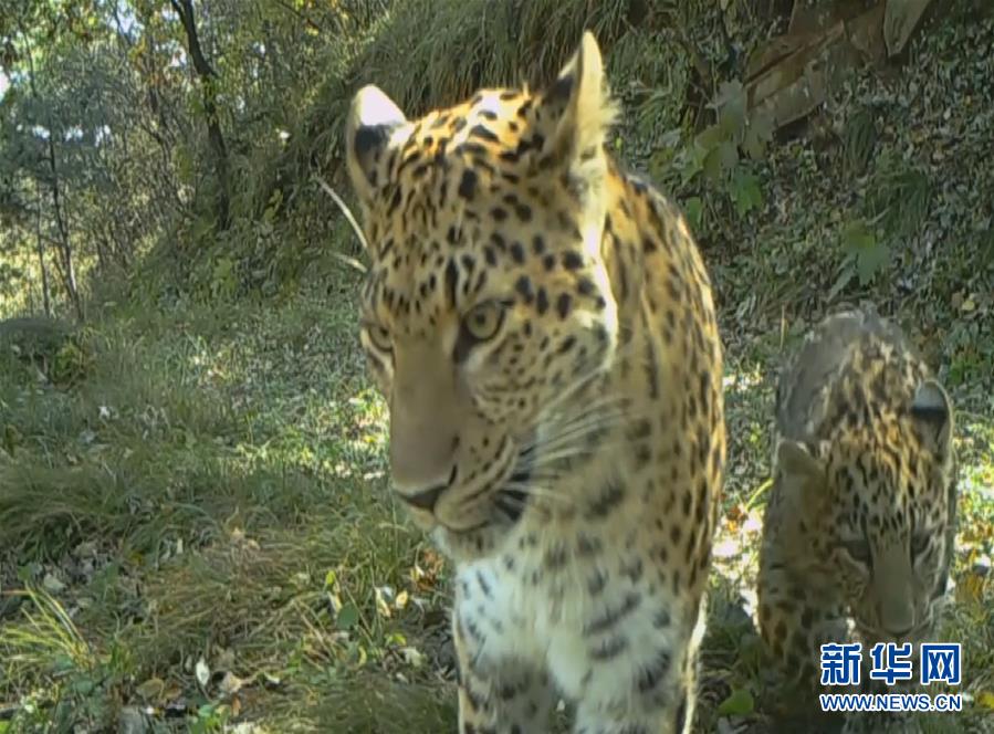 这是2018年山西省和顺县通过红外相机拍到的华北豹F8带领小豹外出的画面(资料照片)。新华社发