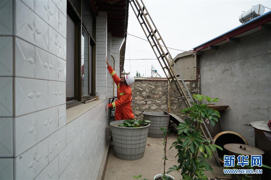 7月12日,消防救援人员在河北省唐山市古冶区卑家店镇前巍峰山村村民家中排查。 新华社记者 牟宇 摄