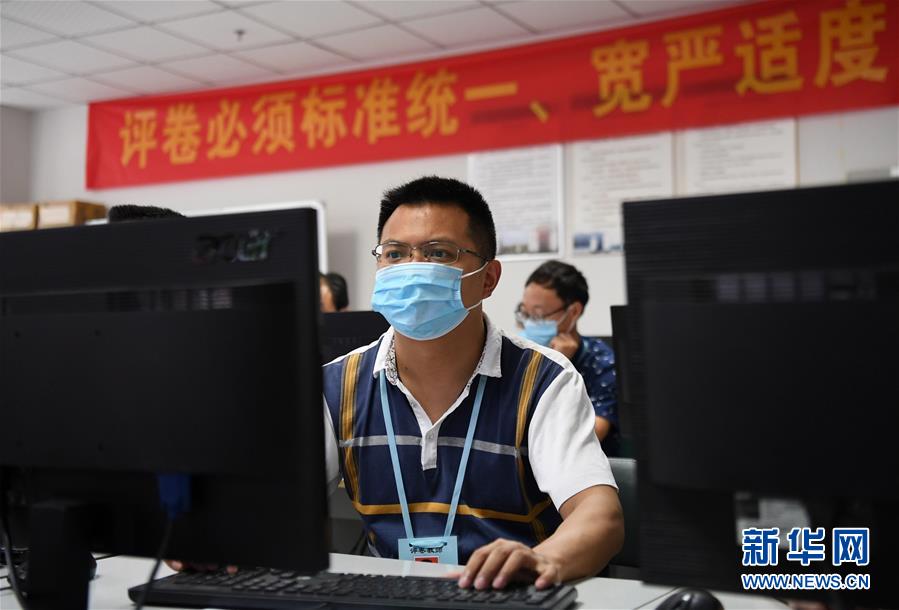 7月12日,评卷老师在西南大学评卷场内阅卷。 新华社记者 唐奕 摄