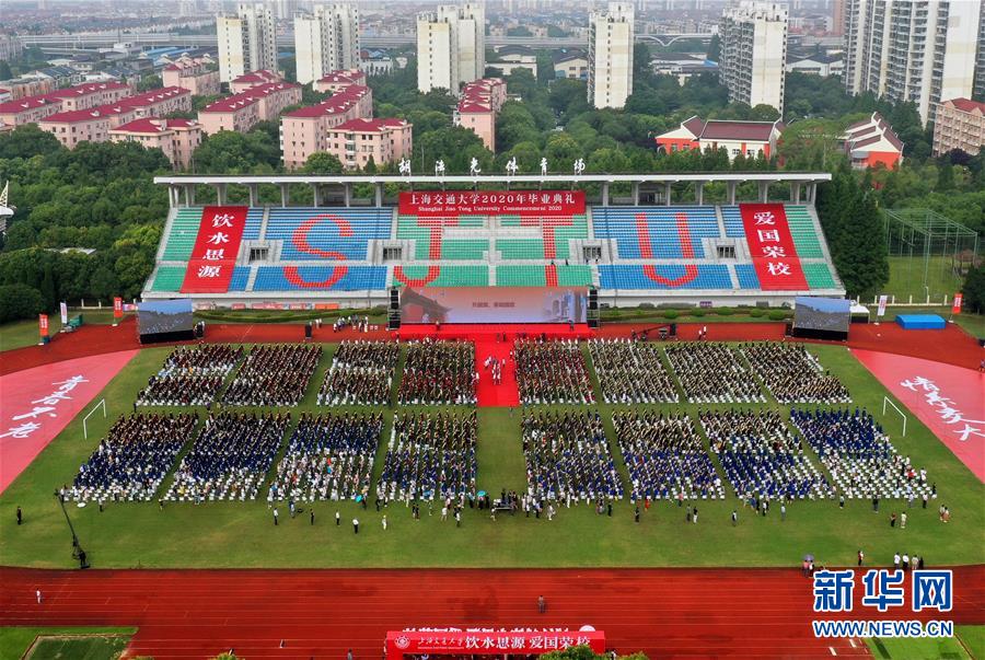 7月12日拍摄的上海交通大学2020年毕业典礼现场(无人机照片)。 新华社记者 刘颖 摄