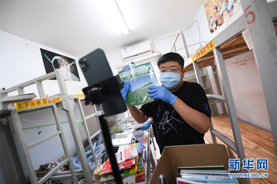 7月15日,在中国人民大学学生宿舍,哲学院老师与毕业生通过手机视频,核对个人物品。 新华社记者 鞠焕宗 摄