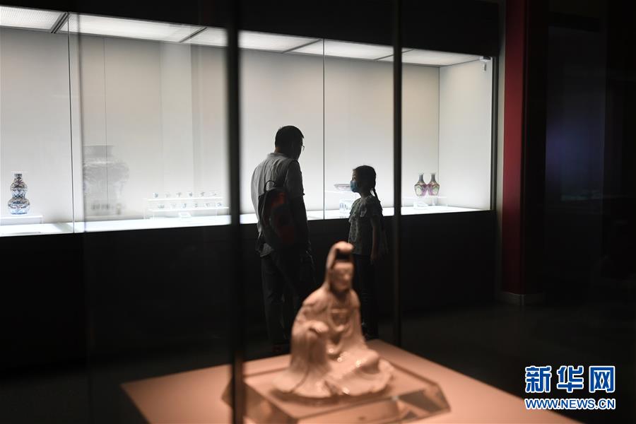 7月15日,家长带着孩子在天津博物馆参观。 暑期来临,不少家长带着孩子到天津博物馆参观,感受文化魅力。 新华社发(赵子硕 摄)