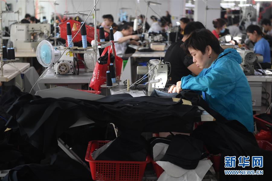 7月15日,在福建省石狮市一家体育用品有限公司,工人在生产内销的服装。新华社记者 宋为伟 摄