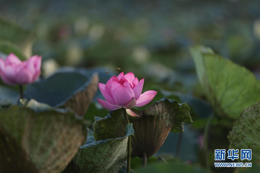 7月15日,越南首都河内西湖畔的荷花吸引蜜蜂前来。
