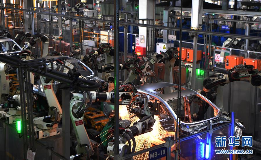这是7月21日拍摄的长安汽车两江工厂焊接车间。 汽车产业是重庆市两江新区的主打产业之一。今年上半年,面对新冠肺炎疫情带来的不利影响,两江新区多措并举,通过驻厂协调等方式,解决相关企业所面临的防疫、招工、物流等难题,助力上下游协同复工复产,推动汽车产业健康发展。今年1至6月,两江新区汽车产业产值增速达8%。 新华社记者 王全超 摄
