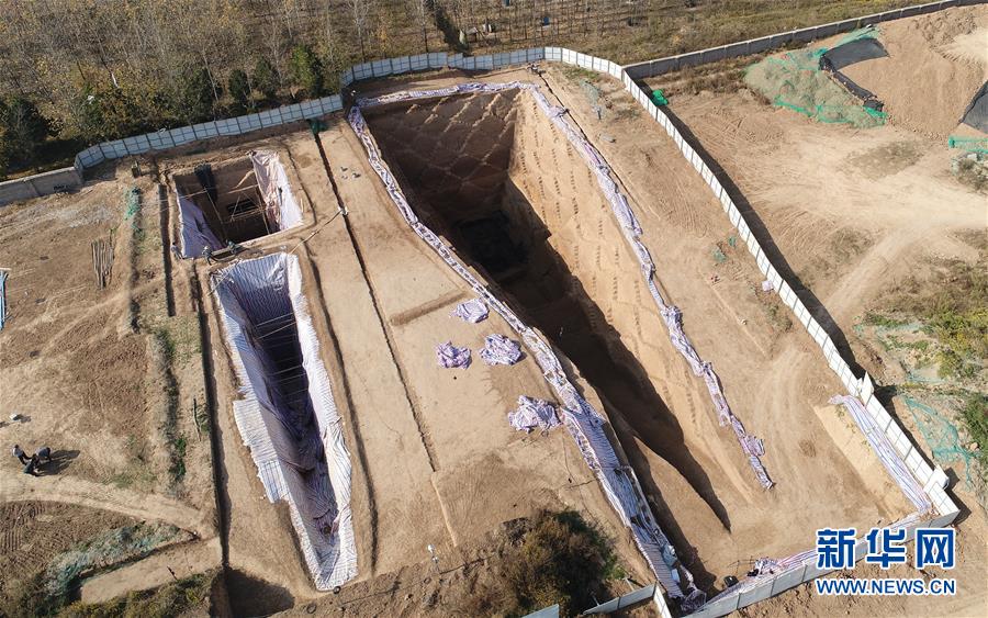 这是西安市东郊白鹿原西汉早期墓葬群的考古发掘现场(2018年11月2日摄,无人机照片)。 新华社发