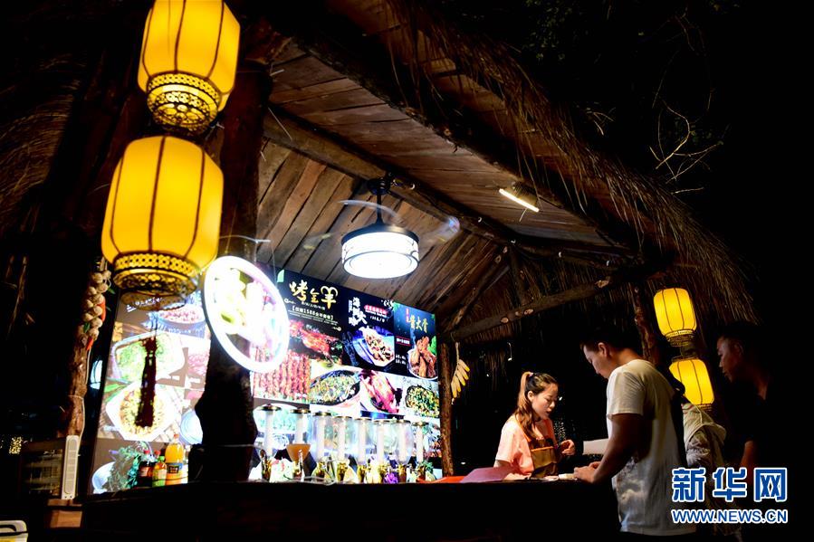 游人在河南济源愚公村王屋老街餐饮夜市点餐(6月30日摄)。 新华社记者 朱祥 摄