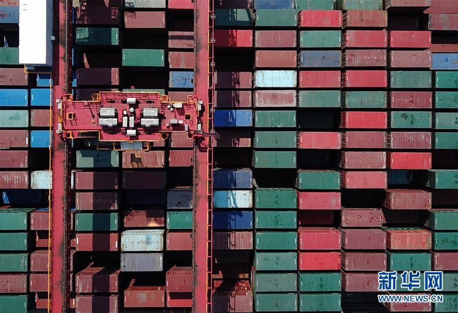 这是停放在福州青州集装箱码头等待装运出口的集装箱( 7月21日摄)。新华社记者魏培全摄