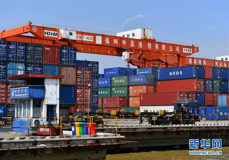福州青州集装箱码头堆放的准备装运的集装箱(7月21日摄)。新华社记者魏培全摄