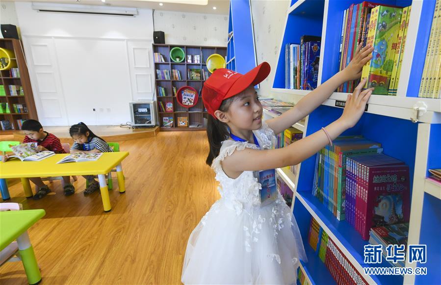 7月21日,“小小荐书员”在河北省武邑县新华书店内整理图书。 新华社记者 李晓果 摄