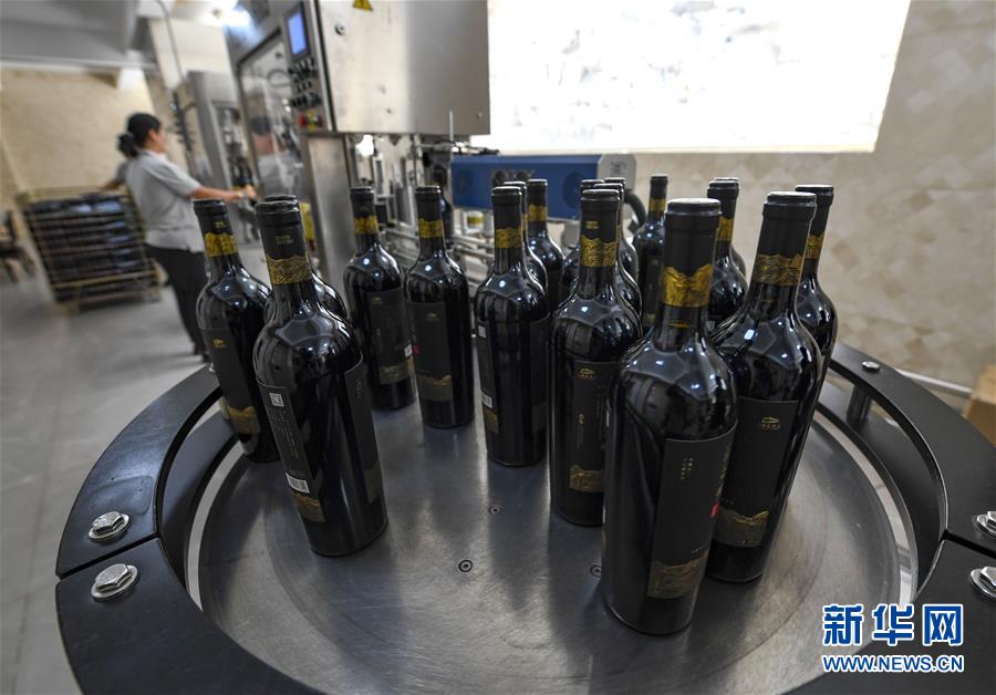 宁夏志辉源石酒庄生产线上的葡萄酒成品(7月22日摄)。 新华社记者 冯开华 摄