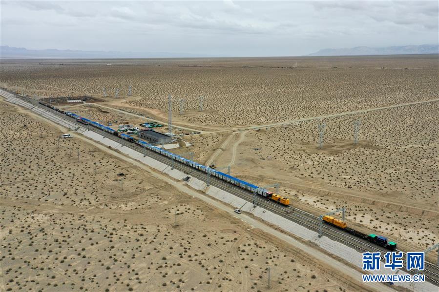 静驻在戈壁上,它是铁路工人流动的家(7月19日摄,无人机照片)。新华社记者 丁磊 摄