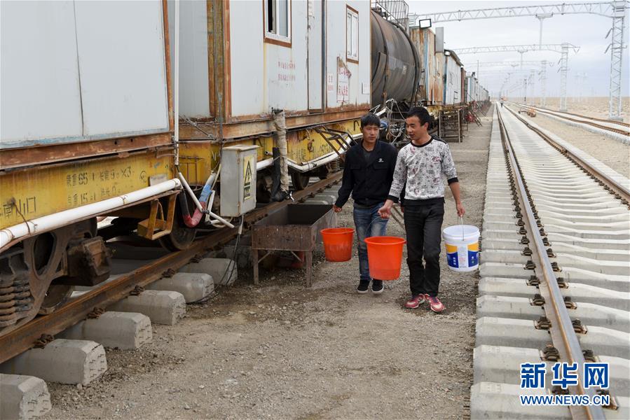中铁一局的施工人员打完水返回宿舍(7月19日摄)。新华社记者 丁磊 摄