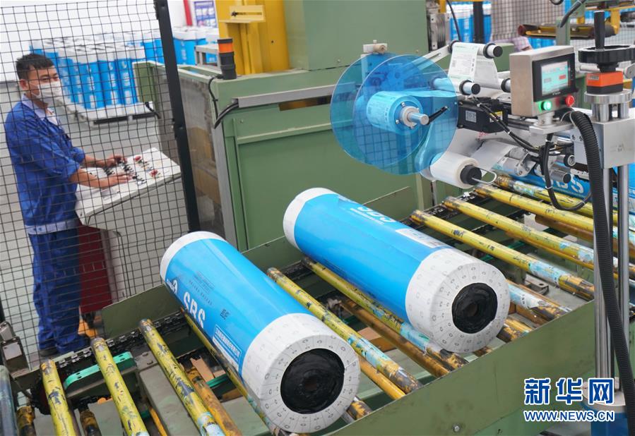 7月25日,工人在唐山市丰南区一家防水卷材企业的生产车间工作。 新华社记者杨世尧摄