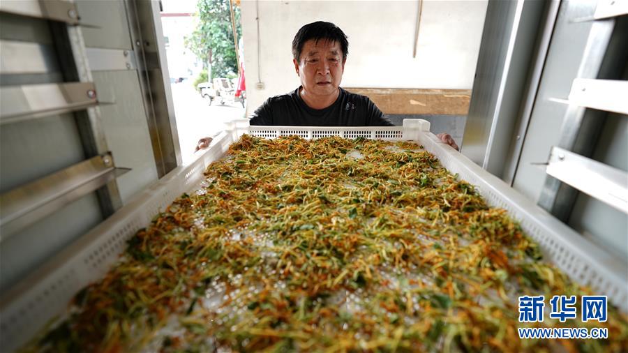7月25日,河北省巨鹿县堤村乡前堤村村民在将采收的金银花进行烘干。新华社记者 牟宇 摄