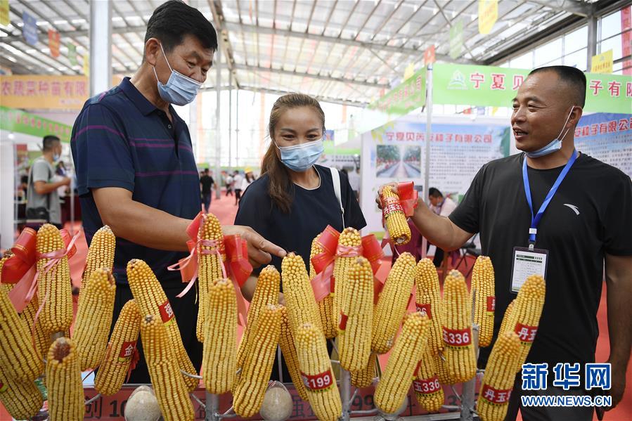 7月27日,参会者在展览现场了解玉米种子产品。 当日,第七届宁夏种业博览会在宁夏回族自治区石嘴山市平罗县种子小镇泰金种业产业园开幕。本届种业博览会有来自国内外150家种子企业的8大类4000个品种参展,为制种产业发展、农户科学选种搭建平台,让小种子为乡村振兴带来新动力。 新华社记者 王鹏 摄